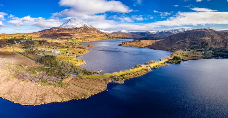 Explore the enchanting surroundings of Ionad Cois Locha in Dunlewey, County Donegal, where natural beauty and cultural heritage come together to create an unforgettable experience. Nestled at the foot of the majestic Errigal Mountain, this area is a haven for nature lovers and adventure seekers alike.